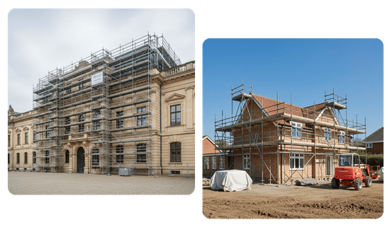 Každá stavba má své specifické nároky – ať už jde o výšku, přístupnost, historickou hodnotu nebo potřebu rychlé realizace. Nabízíme montáž a demontáž lešení pro široké spektrum stavebních i rekonstrukčních projektů. Díky našim zkušenostem umíme pracovat s různými typy objektů – od rodinných domů přes průmyslové haly až po památkově chráněné budovy. Služby dokážeme přizpůsobit každému prostředí.